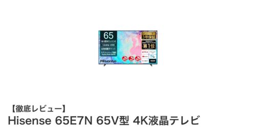Hisense 65E7N 65V型 4K液晶テレビの魅力を徹底解説!量子ドット&144Hz倍速パネル搭載モデルHisenseの65E7Nは、65V型の大画面と4K解像度に加え、量子ドット技術を搭載した高画質が最大の魅力の4K液晶テ...