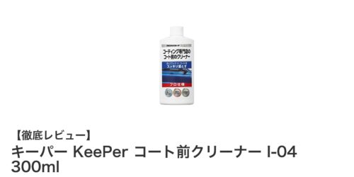 車の美しさを引き出す!キーパー KeePer コート前クリーナー I-04 300mlの魅力とは?車のボディメンテナンスに欠かせないのが、下地処理です。キーパー KeePer コート前クリーナー I-04 300mlは...