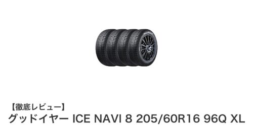 ミニバンに最適!グッドイヤー ICE NAVI 8 205/60R16 96Q XLのスタッドレスタイヤ4本セットレビュー冬のドライブを安心・安全にしたい方必見のスタッドレスタイヤ、グッドイヤー ICE NAVI 8 205/60R16 96...
