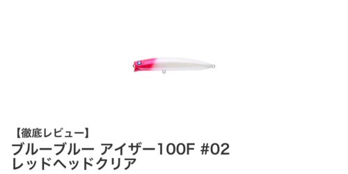 ブルーブルー アイザー100F #02 レッドヘッドクリアで狙う浅場攻略の新定番ルアーブルーブルーのアイザー100Fは、100mmの全長と13.5gの軽量ボディで扱いやすさが魅力のルアーです。浅場から中層の...