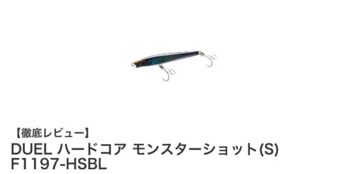DUEL ハードコア モンスターショット(S)で狙う!遠投性能抜群のシンキングペンシルDUELのシンキングペンシル「ハードコア モンスターショット(S) F1197-HSBL」は、遠投性能を追求するアングラ...