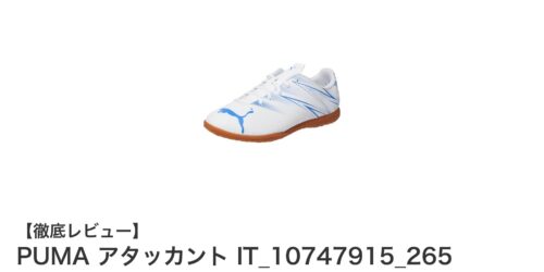 軽量で快適!PUMAの室内用フットサルシューズ「アタッカント IT_10747915_265」レビューフットサルや室内スポーツで活躍するシューズ選びは、軽さとグリップ力が重要です。PUMAの「アタッカント IT_10747...