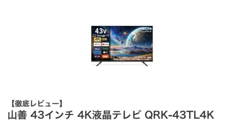山善 43インチ 4K液晶テレビ QRK-43TL4Kの魅力を徹底解説!ネット動画視聴に最適な高画質モデル山善の43インチ4K液晶テレビ、QRK-43TL4Kは、地上波チューナーを搭載せずにネット動画視聴に特化したモデルです。...