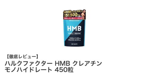 筋肉強化と持久力アップに最適!ハルクファクター HMB クレアチン モノハイドレート450粒の魅力とは?筋トレやスポーツのパフォーマンス向上を目指すなら、サプリメント選びが重要です。ハルクファクターのHMBとクレアチンを高配...